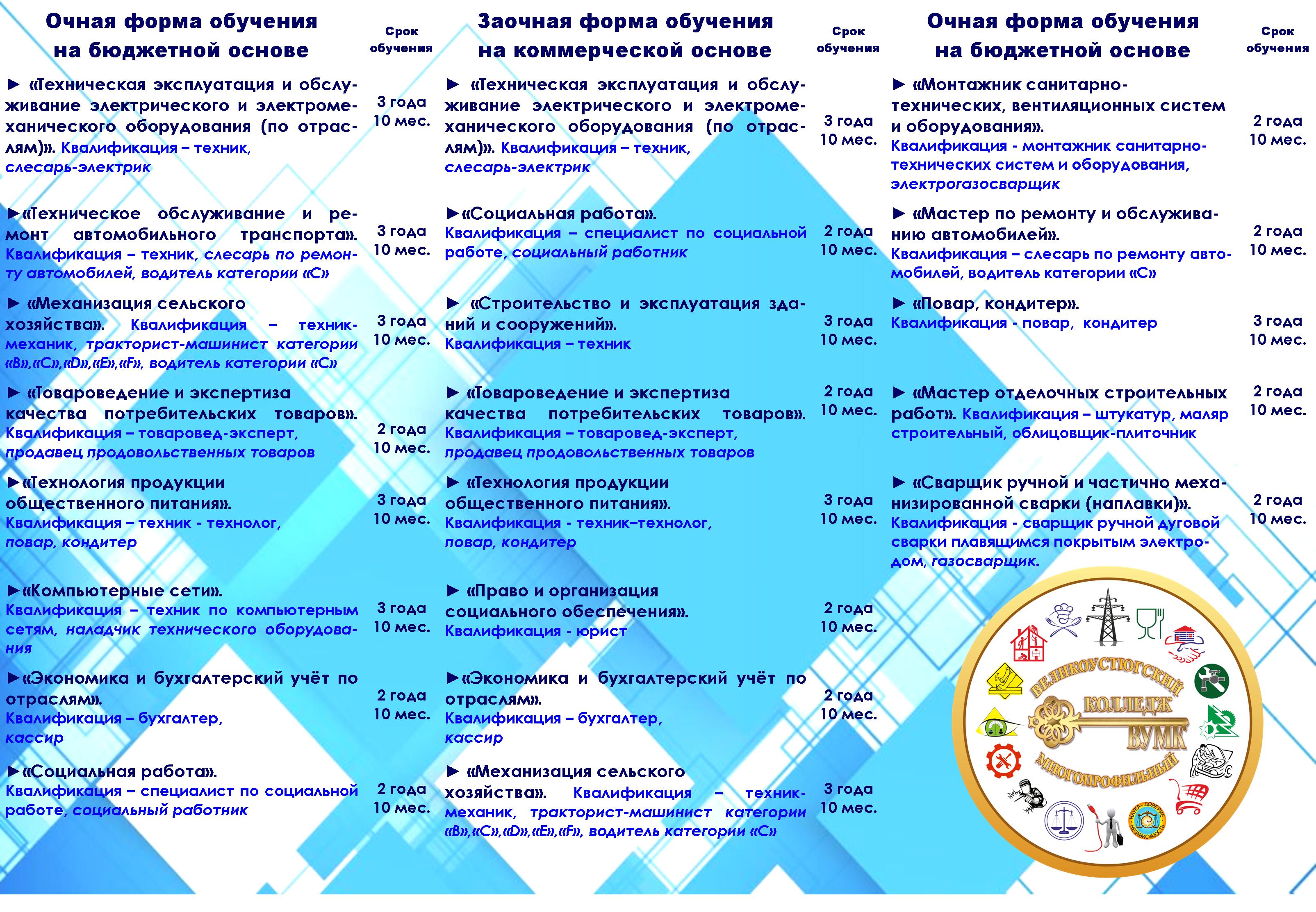 - какие профессии и специальности можно получить в этих учебных заведениях;