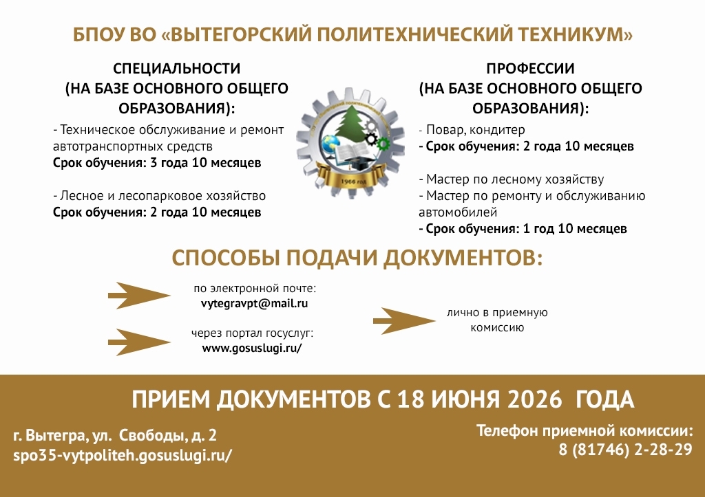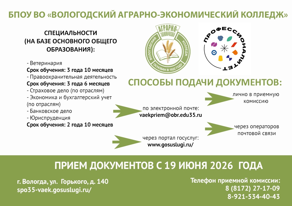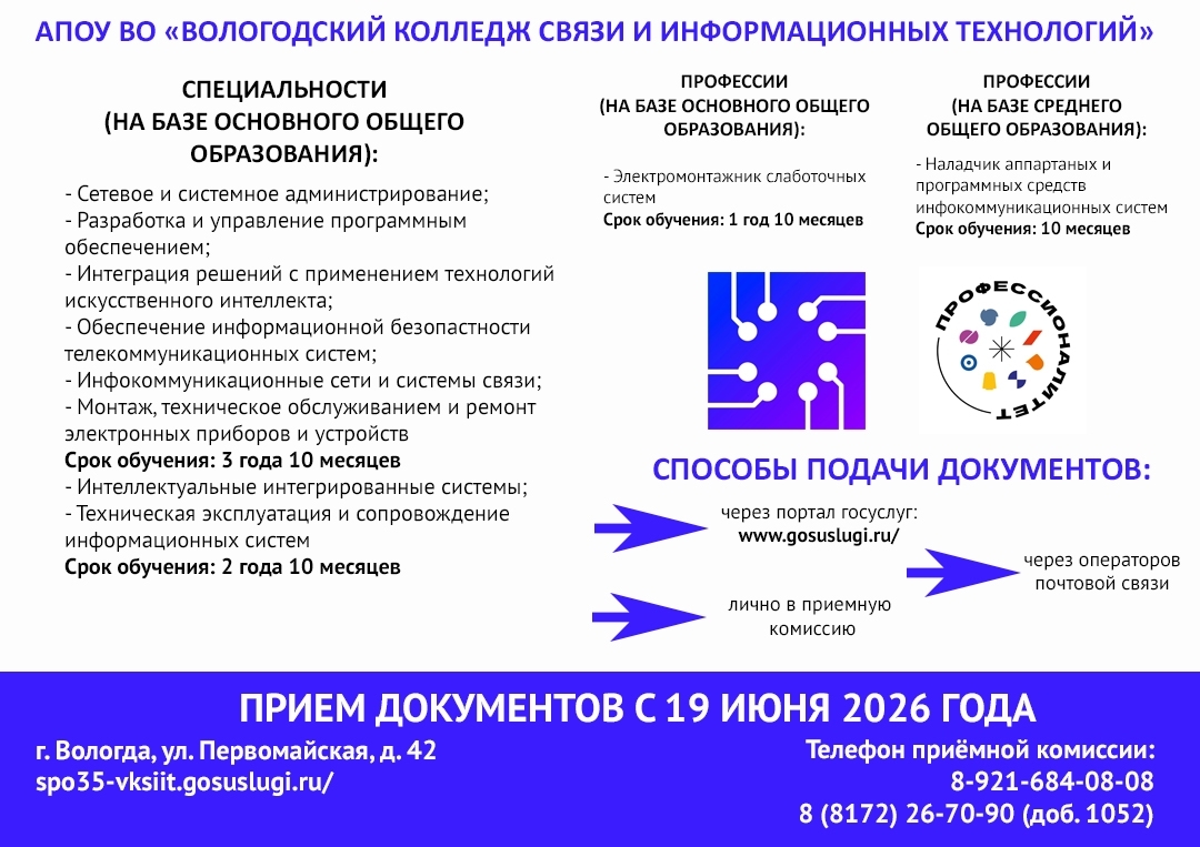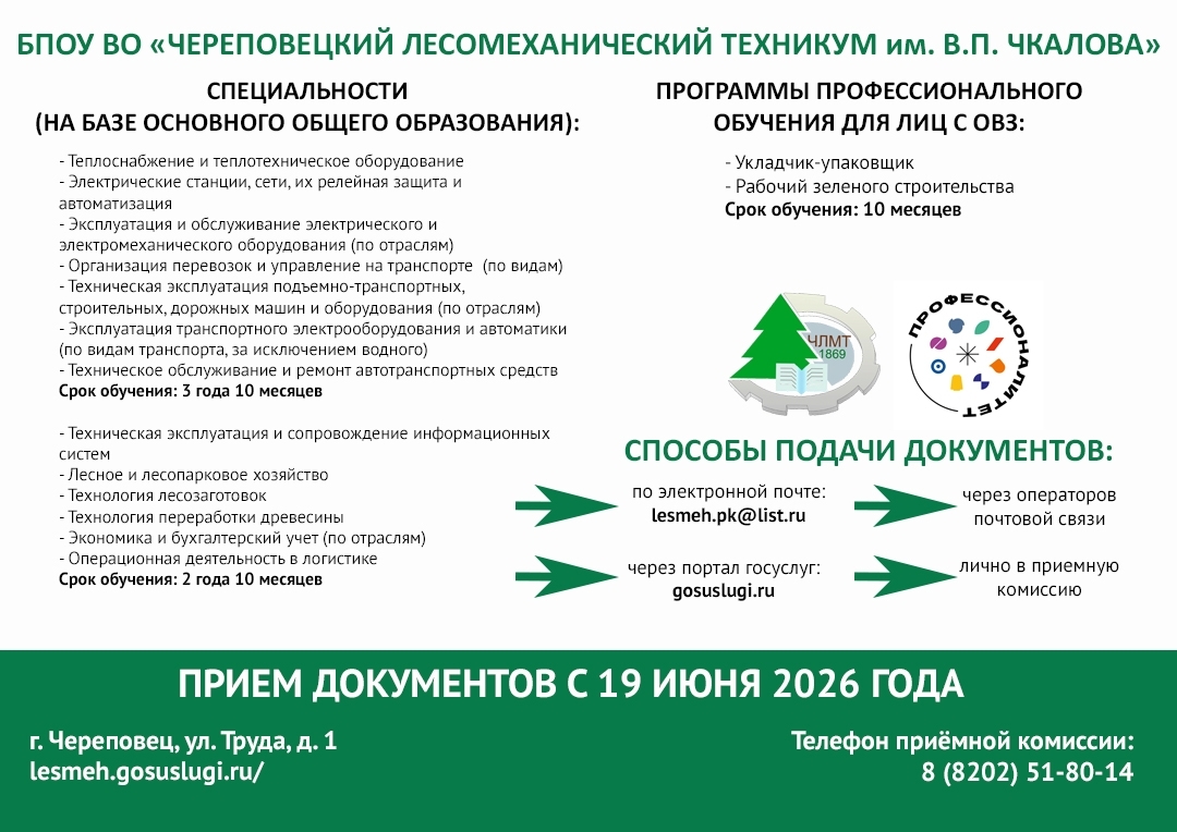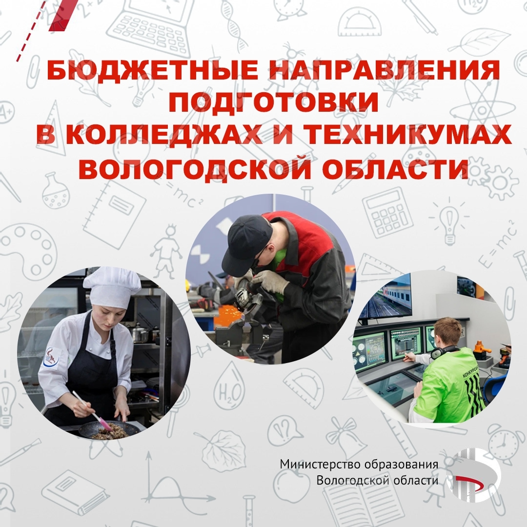 О направлениях подготовки в колледжах и техникумах области – в карточках Министерства образования Вологодской области: