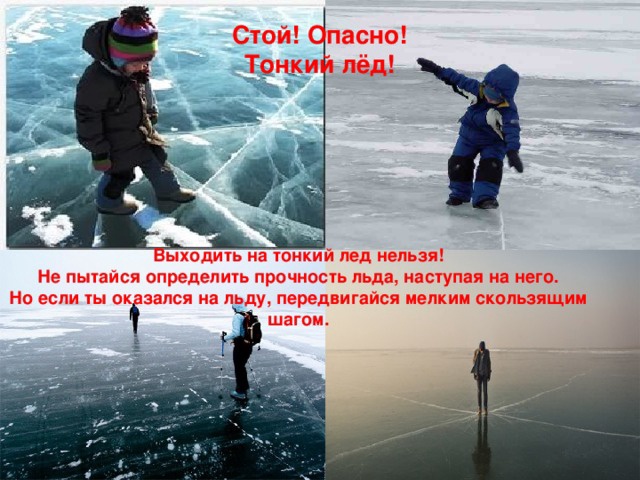 Запретите ребенку проверять, насколько прочен лед, ударяя по нему ногами. Лед может оказаться тонким, и ребенок запросто провалится.