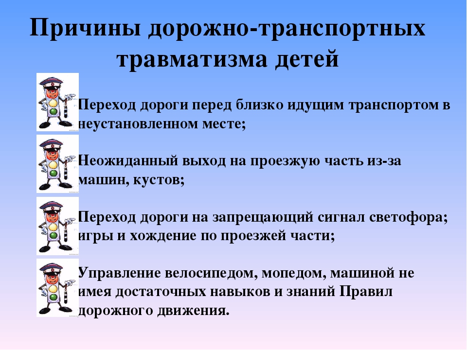 Часто мы задаемся вопросом: почему дети попадают в дорожно-транспортные происшествия? Казалось бы, ответ простой: если ребенок по собственной неосторожности получил травму в дорожно-транспортном происшествии, то это – вина ребенка. Но понятия «вина ребенка» не существует. Дорожное происшествие с ним означает лишь, что мы, взрослые, где-то недосмотрели, чему-то не научили или же личным примером показали, что можно нарушить «закон дороги». И часто за случаями детского травматизма на дрогах стоит безучастность взрослых к совершаемым детьми правонарушениям.